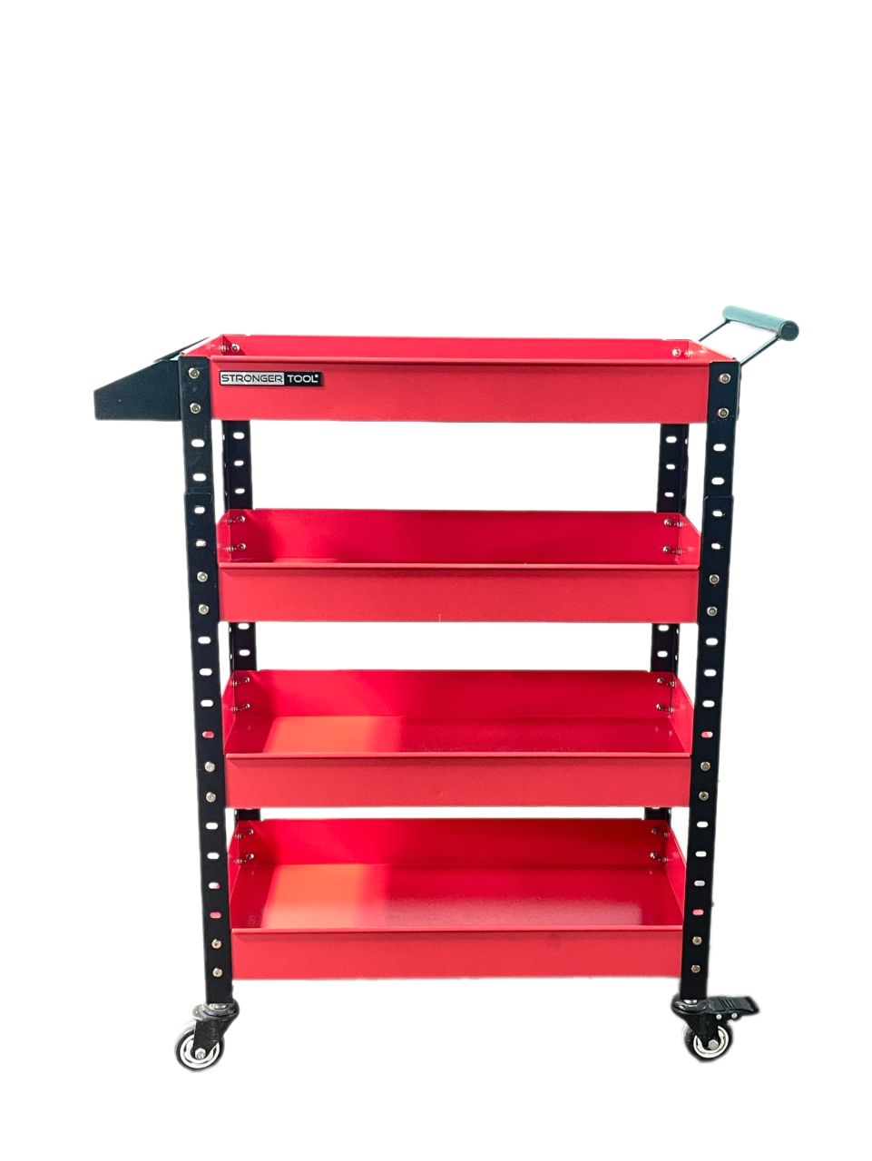 XE ĐẨY DỤNG CỤ 4 NGĂN STRONGER TOOL Kích thước: dài 720mm rộng 380mm cao 1030mm Số khay: 4 khay + khay phụ + tay nắm Màu sắc: xanh, đỏ, đen Khối lượng: 22kg Tải trọng: 150kg Thương hiêu: Stronger Tool Nơi sản xuất Việt Nam Bảo hành 6 tháng Sản phẩm dùng cho garage ô tô, tiệm sửa xe, nhà máy, gia đình, tiệm tóc, tiệm chụp hì Sản phẩm dễ dàng lắp ráp, có bánh xe di chuyển linh động, sắp xếp đồ đạc gọn gàng, ngăn nắp, tiết kiệm không gian