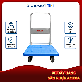 ✨Xe Đẩy Hàng 4 Bánh Ameca HAM-300P- Sàn nhựa, Khung Thép, Giảm ồn, Gấp gọn, tải trọng 300kg - bảo hành 12 tháng