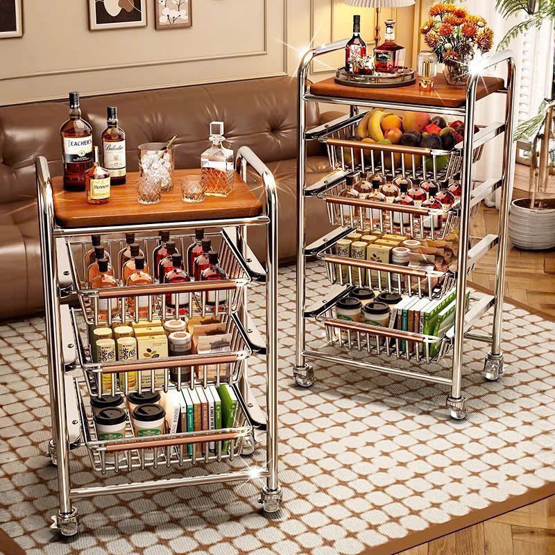 ✨Xe Đẩy Kệ Để Đồ Đa Năng Nhiều Ngăn Tầng Có Ván Gỗ Retro Vintage – Khung Kim Loại Chắc Chắn, Kệ Trang Trí Nhà Bếp Phòng Khách - HÀNG CHÍNH HÃNG MINIIN