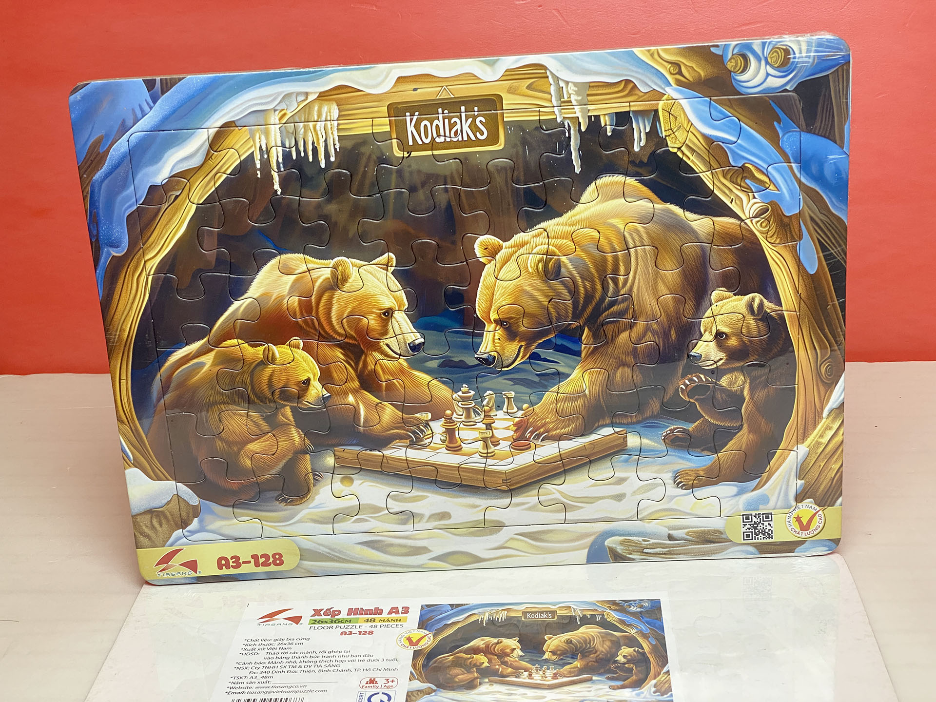 Tranh xếp hình Tia Sáng 48 mảnh - Nhà Gấu đấu cờ (A3-128) - Phát triển trí tuệ cho bé • Chất liệu cao cấp: Sản phẩm được in trên giấy chất lượng cao, đảm bảo độ bền và an toàn cho bé khi sử dụng. Là hàng Việt Nam chất lượng cao do NTD bình chọn. • Mảnh cắt sắc nét: Các mảnh ghép được cắt tỉ mỉ, vừa vặn, giúp bé dễ dàng lắp ráp mà không gặp khó khăn. • Màu sắc rực rỡ: Hình ảnh trên các mảnh ghép có màu sắc tươi sáng, thu hút sự chú ý và kích thích thị giác của bé. • Phát triển trí tuệ: Trò chơi giúp bé rèn luyện khả năng suy luận, quan sát, và tư duy logic. Bé sẽ học cách tập trung và giải quyết vấn đề một cách hiệu quả. • Phù hợp độ tuổi: Với 48 mảnh ghép, sản phẩm này được thiết kế đặc biệt cho trẻ từ 3 tuổi trở lên, giúp phát triển trí não toàn diện trong giai đoạn quan trọng này. Người lớn cũng chơi với bộ này như một cách giải trí, thư giãn trong thời gian 15 – 20 phút. • Giải trí và giáo dục: Không chỉ là một món đồ chơi giải trí, tranh xếp hình còn mang tính giáo dục cao, giúp bé học hỏi và phát triển kỹ năng một cách tự nhiên.