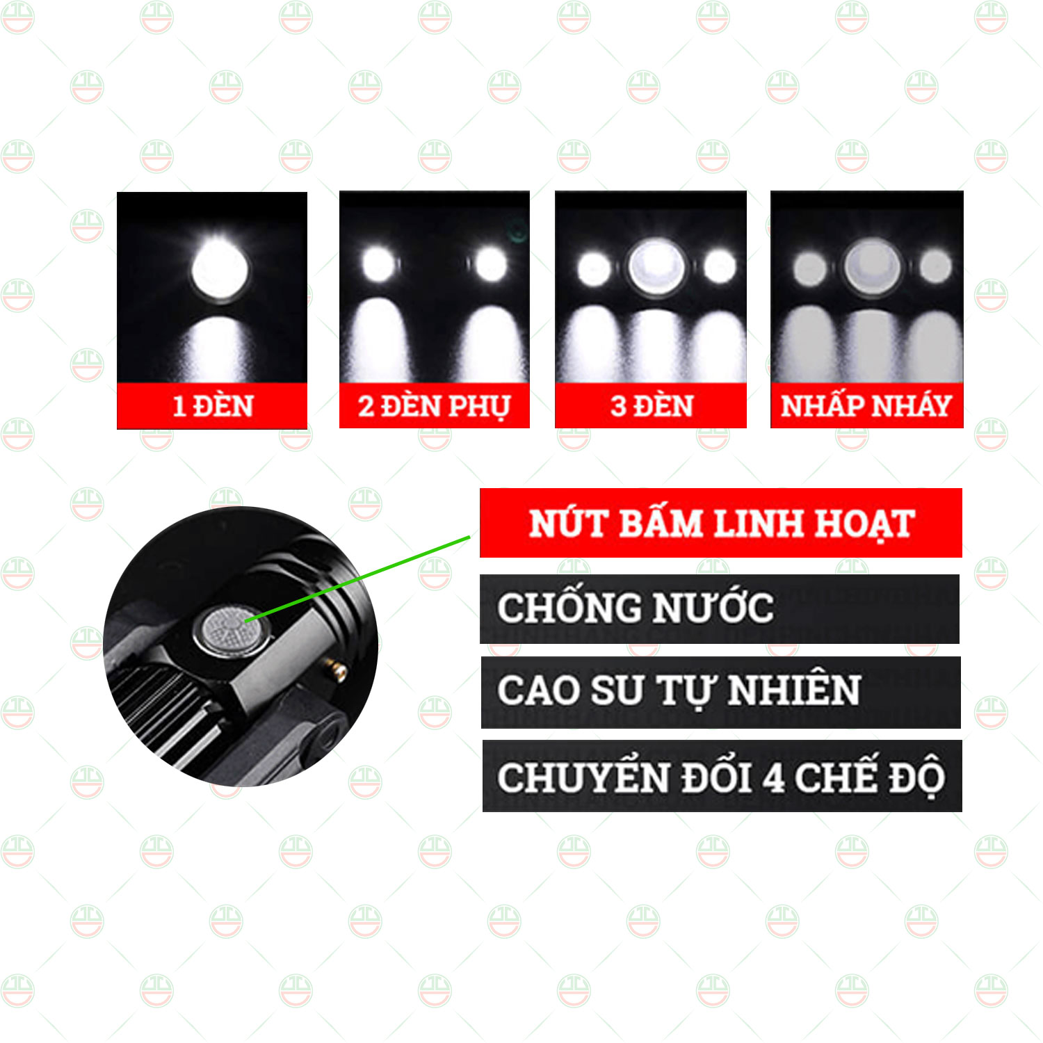- ĐẶC ĐIỂM NỔI BẬT Chất liệu cao cấp: Được làm từ nhựa ABS bền bỉ, chống ăn mòn, chịu va đập tốt. dung lượng pin : 600mah - 3 chế độ sáng linh hoạt: