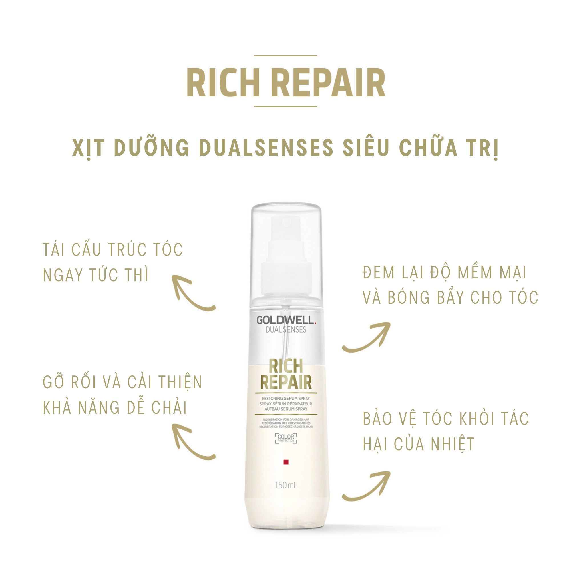 ✨Xịt Dưỡng Phục Hồi Tóc Hư Tổn Goldwell Rich Repair Tái Tạo Tóc Tức Thì, Tóc Bóng Khỏe Tự Nhiên