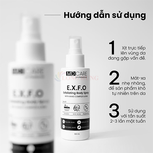 ✨Xịt tẩy tế bào chết toàn thân MD CARE Exfoliating Body Spray (100ml) - Hàng chính hãng