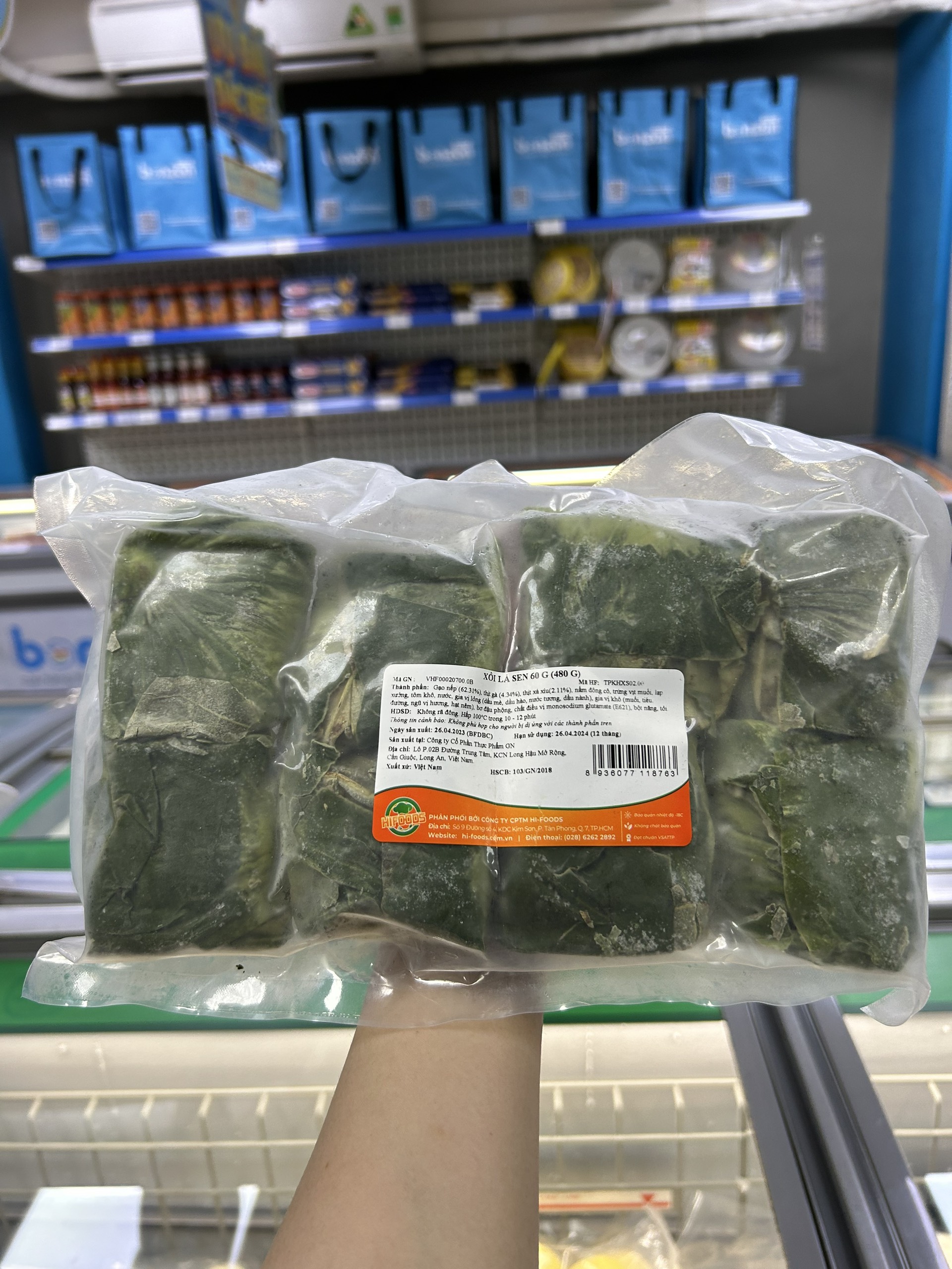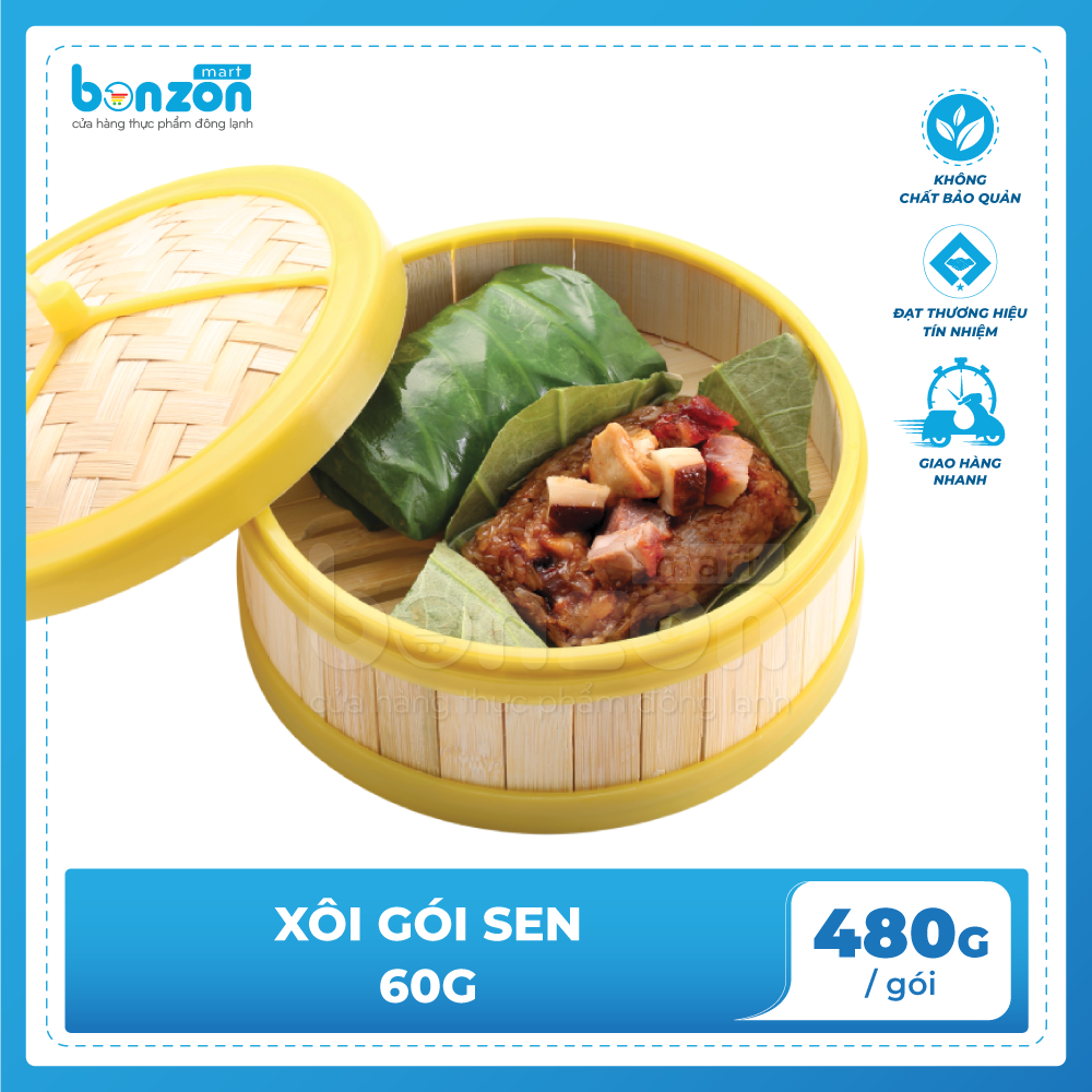 Mua tại TiktokVới sản phẩm tươi sống, trọng lượng thực tế có thể chênh lệch khoảng 10%. ĐỊNH LƯỢNG: 60 g/cái x 8 cái/gói THÀNH PHẦN: Gạo nếp, thịt gà, thịt xá xíu, nấm đông cô, trứng vịt muối, ngũ vị hương, bơ đậu phộng, gia vị MÔ TẢ SẢN PHẨM: - Nếp đã nấu chín được gói trong lá sen tươi cùng thịt gà, nấm đông cô, thịt xá xíu, trứng vịt muối, lạp xưởng, tôm khô,.. - Mùi vị: Gạo nếp dẻo thơm cùng vị đậm đà mang hương vị đặc trưng của sản phẩm CÁCH CHẾ BIẾN: - Không rã đông - Hấp 100°C, 6-7 phút. - Microwave ở chế độ hấp: 3-4 phút BẢO QUẢN: - Bảo quản ở nhiệt độ -15°c đến -18°c hoặc trong ngăn đá tủ lạnh - Không đông lại sau khi đã rã đông HSD: 12 tháng
