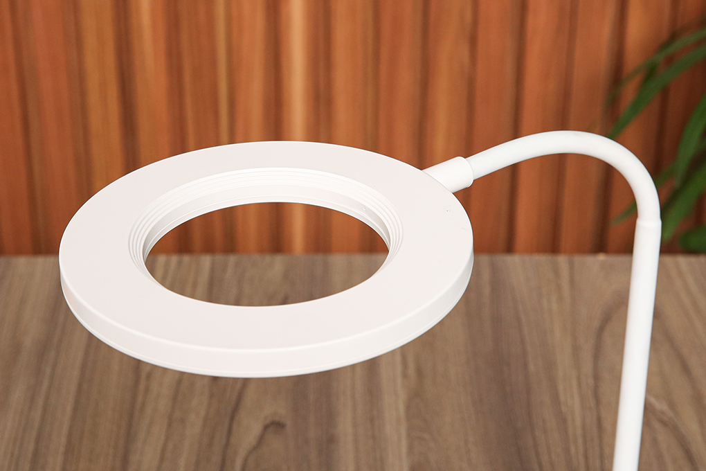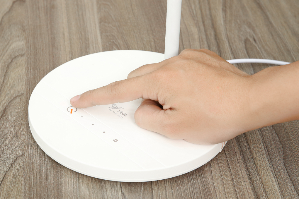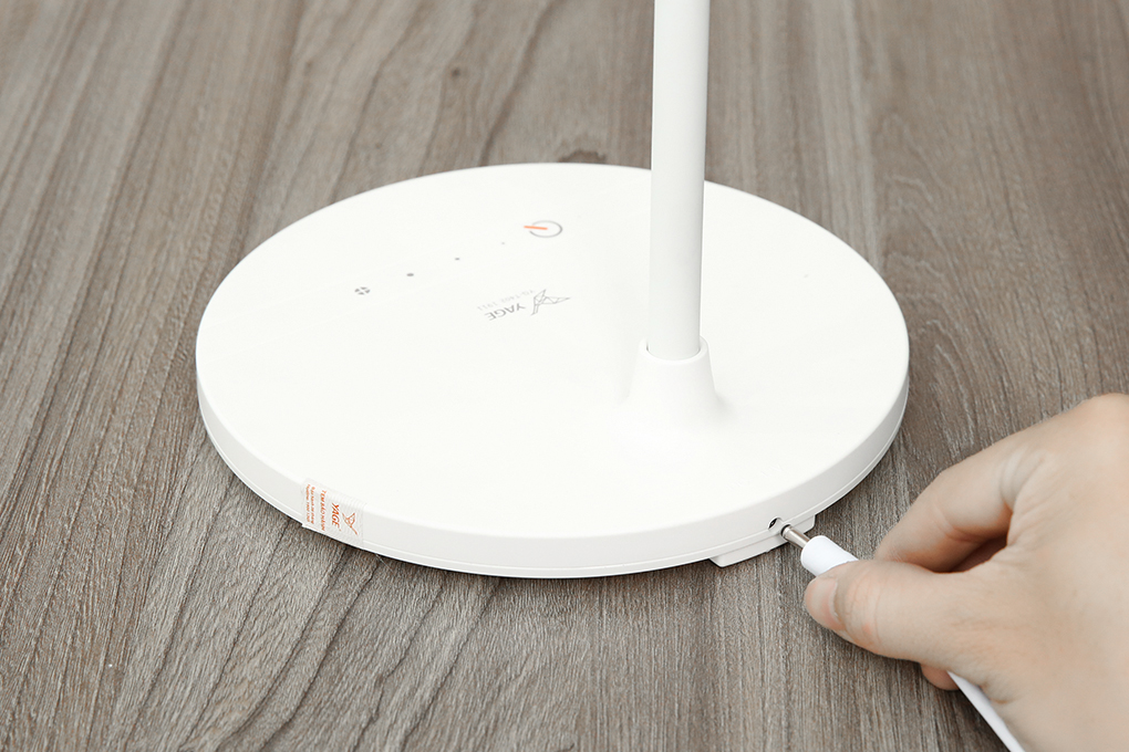 Đèn bàn học YAGE màu trắng tươi sáng, thiết kế nhẹ gọn, chân đế tròn to đặt thăng bằng trên mặt bàn, kệ